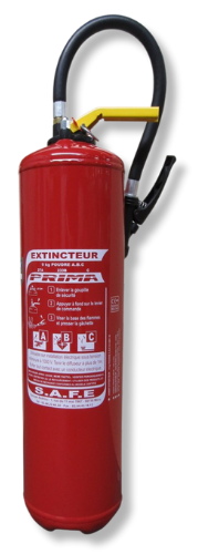 L’extincteur à poudre est polyvalent et peut être utilisé sur les feux de classe A, B et C. Il interrompt la réaction chimique de la combustion, ce qui le rend très efficace. Toutefois, il laisse des résidus poudreux pouvant endommager les équipements sensibles.